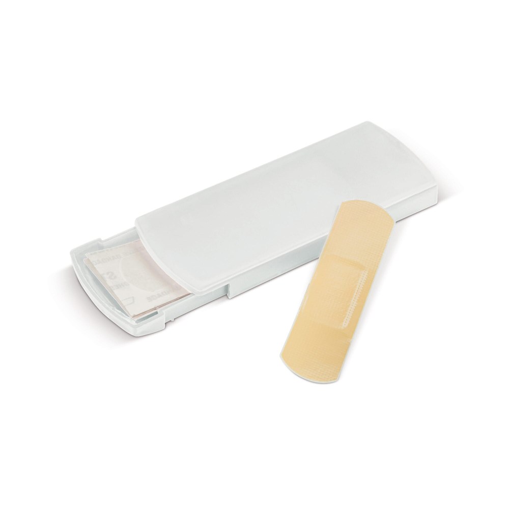 Das Gehäuse des Pflaster-Sets besteht aus robustem Kunststoff. Die Abmessungen sind optimiert für die Jacken- oder Hosentasche. Jedes Set beinhaltet fünf sterile Wundpflaster. Die Pflaster sind sicher und hygienisch verpackt. Der Schiebemechanismus sorgt für schnelles Öffnen und sicheres Verschließen. Die Verfügbarkeit variabler Farben ermöglicht eine Anpassung an dein Corporate Design.