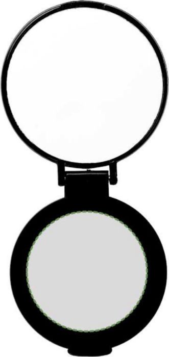 Du erhältst einen robusten Taschenspiegel aus langlebigem PS-Kunststoff.