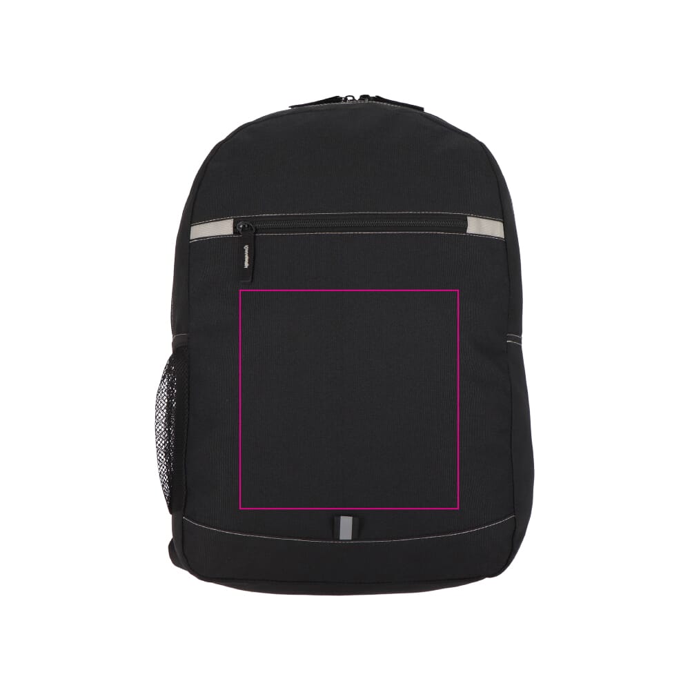 Dieser Rucksack hat ein Fassungsvermögen von 18 Litern. Er verfügt über einen robusten Tragegriff. Die Schultergurte sind gepolstert. Die Länge der Schultergurte lässt sich individuell anpassen. Der Rucksack besitzt ein Vorderfach mit Reißverschluss. Ein seitliches Netzfach bietet Platz für eine Trinkflasche. Der kleine reflektierende Streifen erhöht die Sichtbarkeit bei schlechtem Licht. Der Rucksack ist in den Farben Schwarz, Dunkelblau und Olivgrün erhältlich.