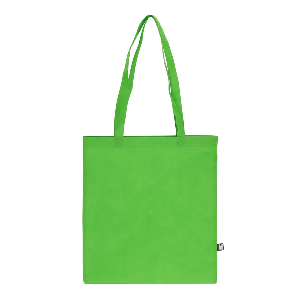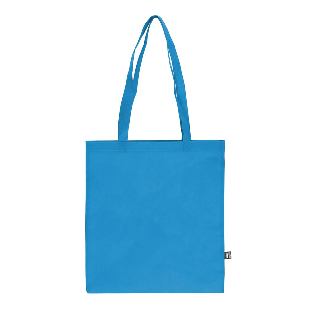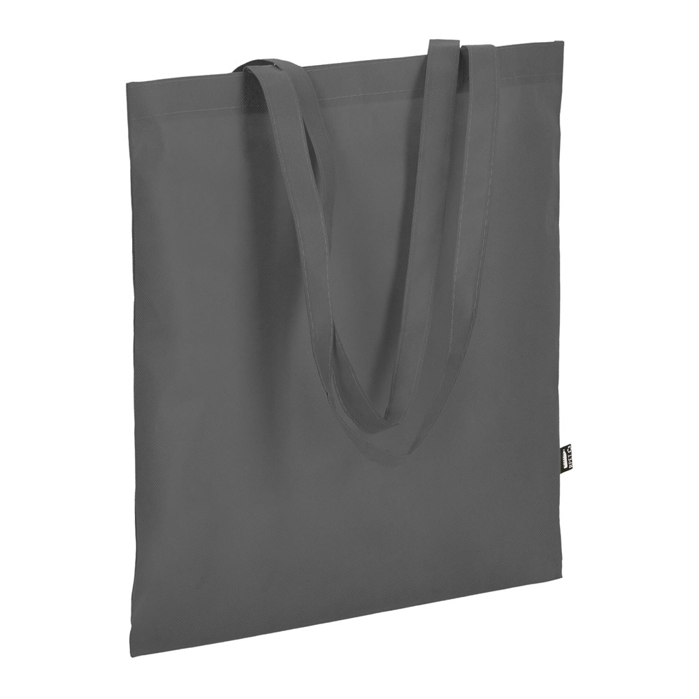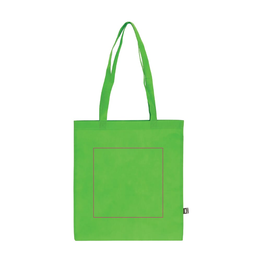 Diese Tragetasche besteht aus 100% recyceltem R-PET Non-Woven Material. Sie ist eine nachhaltige Alternative zu herkömmlichen Einkaufstaschen. Das Format beträgt 38 cm in der Breite und 42 cm in der Höhe. Die Tasche verfügt über stabile, gestickte lange Handgriffe. Das Produkt ist robust und auf Langlebigkeit ausgelegt. Es dient als kosteneffizienter Werbeträger.
