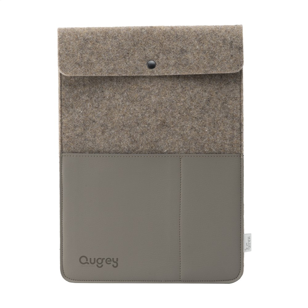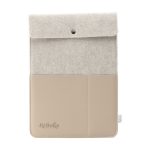 Das Sleeve kombiniert recyceltes Wollfilz mit innovativem Apfelleder.