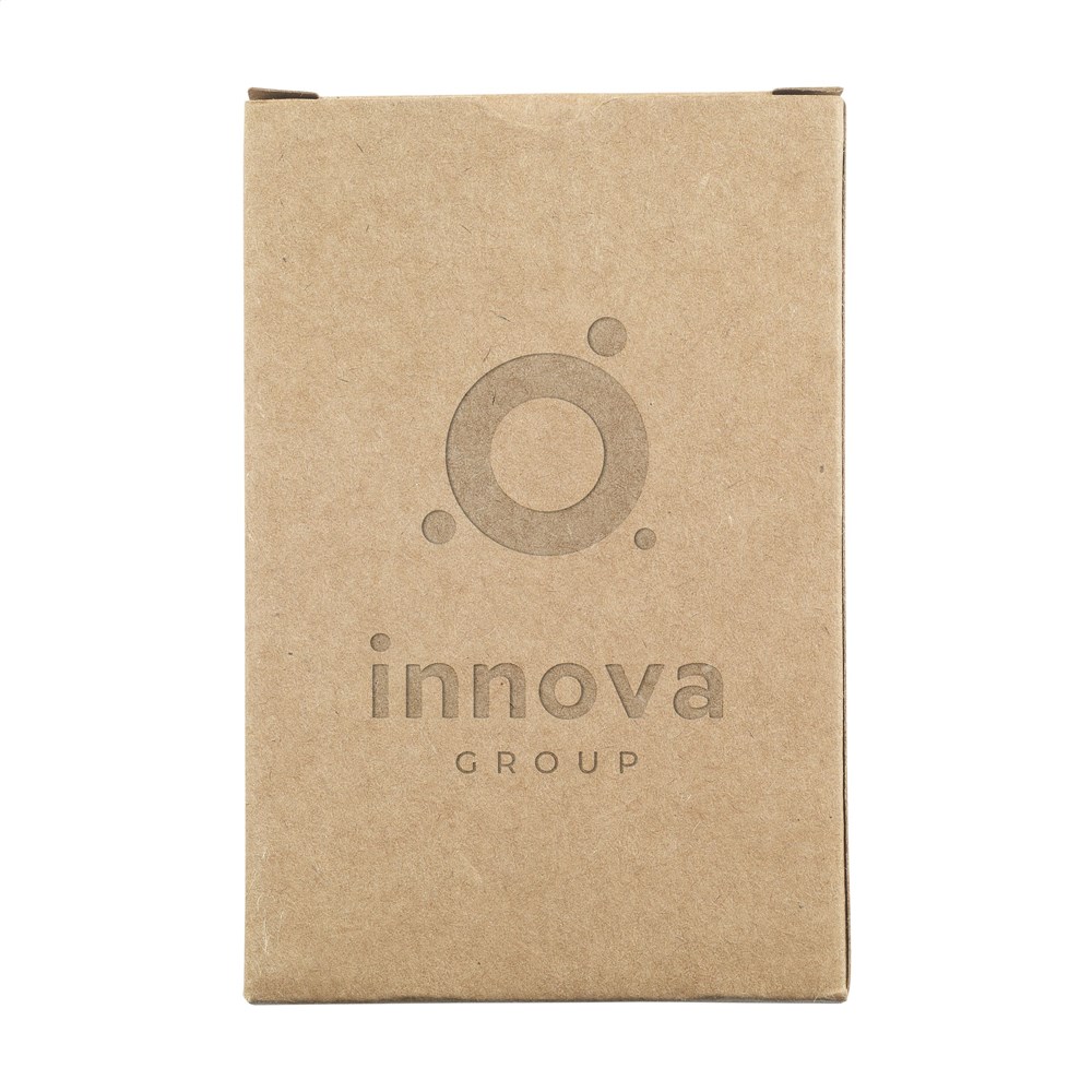 Du suchst nach nachhaltigen Werbemitteln. Dieses Set umfasst vollständige Spielkarten. Die Karten bestehen aus 250 g/m² recyceltem Kraftpapier. Das Set enthält 52 Spielkarten und zwei Joker. Die Spielkarten werden in einer passenden Box aus recyceltem Karton geliefert. Die Rückseite der Karten ist mit einem neutralen Standardmotiv bedruckt.
