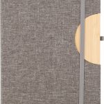 Format: ca. A5. Das Covermaterial ist strapazierfähiges rPET (300D). Das Notizbuch umfasst 80 linierte Seiten. Das Papiergewicht des Papiers beträgt 70 g/m². Der Umschlag fungiert als ausklappbare Handyhalterung. Das Notizbuch besitzt ein hochwertiges Bambus-Detail.