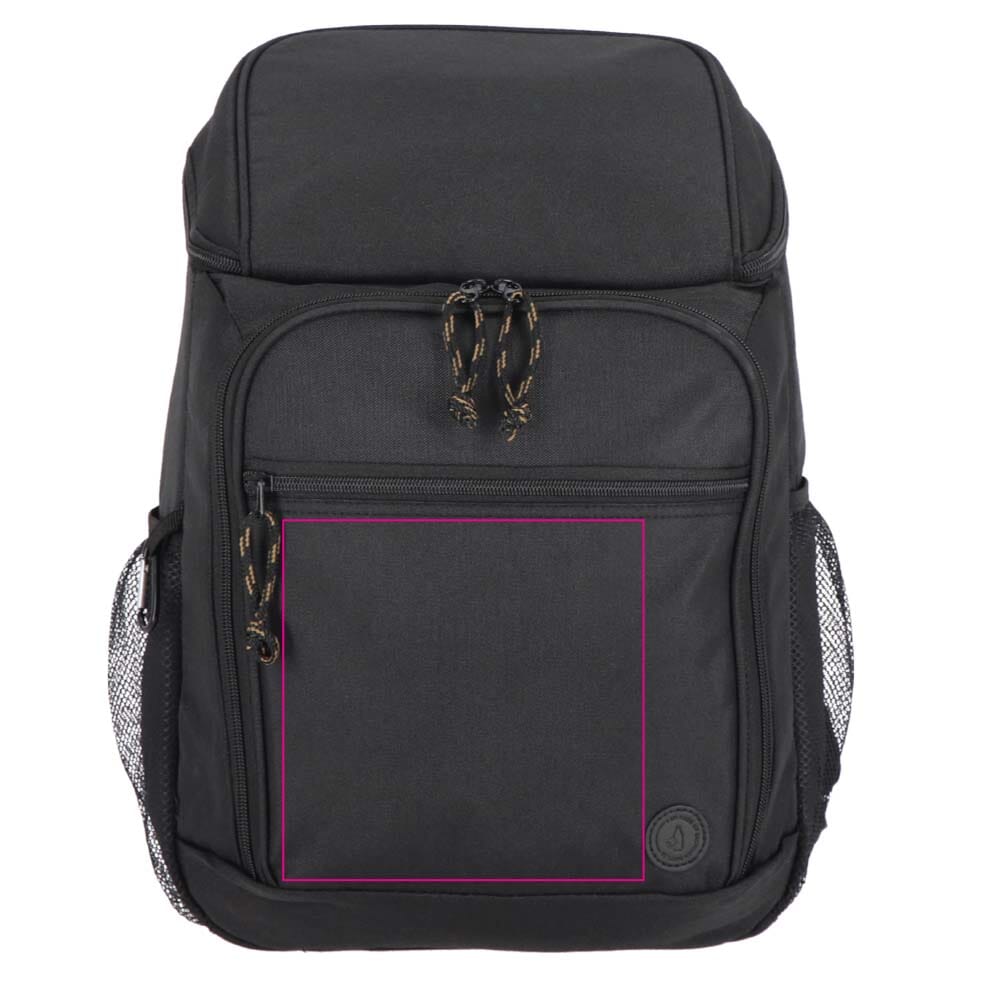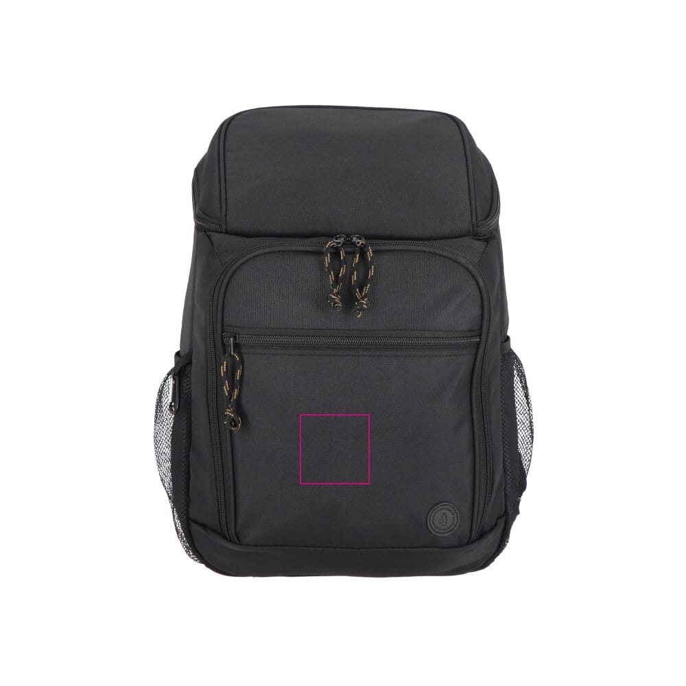 Der Rucksack besteht aus strapazierfähigem rPET-Material. Das Volumen des großen Hauptkühlfachs beträgt 21 Liter. Die Rückseite ist für optimalen Tragekomfort gepolstert. Die Schultergurte sind individuell verstellbar. Er verfügt über zwei zusätzliche Vordertaschen für Zubehör. Seitliche Netztaschen bieten weiteren Stauraum. Der Kühlrucksack ist in Schwarz, Beige und Grün erhältlich.