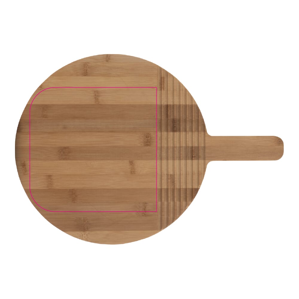Du nutzt diese Bambusplatte als stilvolle Servierplatte. Sie dient auch als robustes Schneidebrett. Das Produkt ist optimal für den Einsatz auf Messen. Verwende es als exklusives Firmengeschenk oder Präsent bei Events.