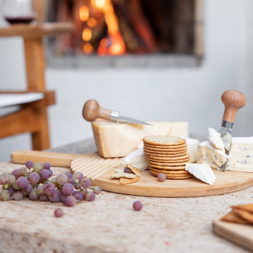 Die Platte verfügt über einen stabilen Griff zum Servieren. Funktionale Rillen auf der Oberfläche verhindern das leichte Abrutschen von Utensilien.