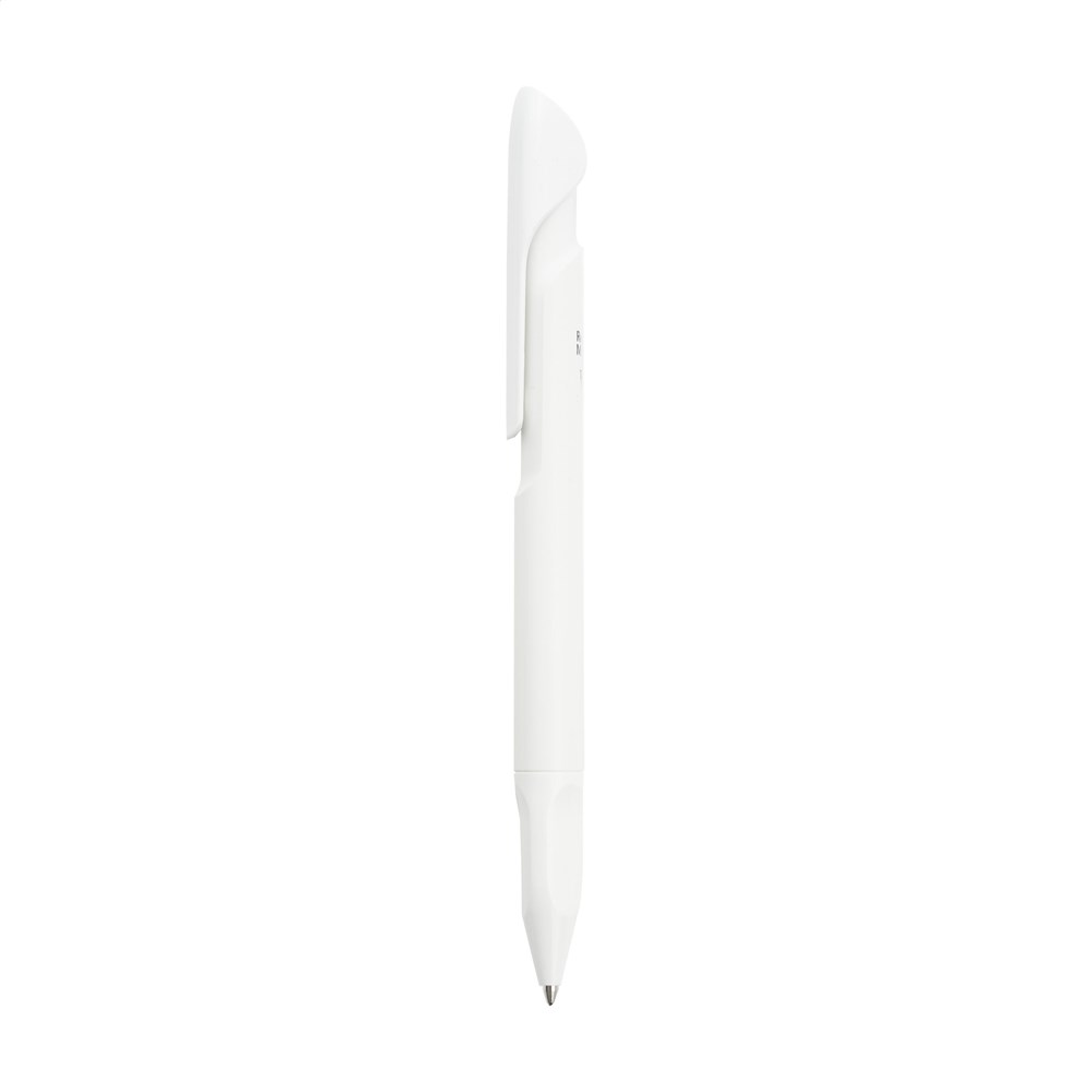 Der Evoxx Kugelschreiber wird in Deutschland hergestellt (Made in Germany). Er besteht zu 95% aus recyceltem R-ABS Material. Das Modell besitzt eine ergonomische Griffzone für hohen Schreibkomfort. Das Design überzeugt durch seinen auffälligen Clip. Die Oberfläche des Stifts ist glänzend poliert. Die Verwendung von recyceltem Material kann zu leichten Unregelmäßigkeiten in der Oberfläche führen. Der Stift ist verfügbar in den Farben Weiß, Schwarz, Grau, Blau und Grün.