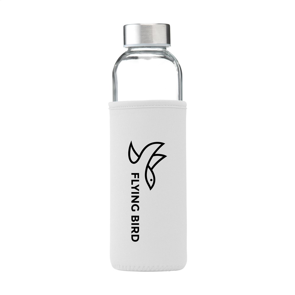 Du nutzt diese Trinkflasche idealerweise für Promotionen, Firmenevents oder Messen. Die Glasflasche eignet sich hervorragend als nachhaltiges Werbegeschenk für Kunden und Mitarbeiter. Durch das zeitlose Design passt die Flasche in das Büro sowie in den Sportbereich. Die Neopren-Sleeve schützt das Glas und isoliert den Inhalt leicht.Logo & Personalisierung