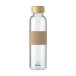 Diese schlanke Glastrinkflasche ist ein hochwertiger Werbeartikel für dein Unternehmen. Das Modell besteht aus Borosilikatglas und bietet ein Fassungsvermögen von 500 ml. Ein Schraubverschluss aus Bambus sorgt für ein natürliches Design. Eine zusätzliche Hülle aus Jute schützt die Flasche und bietet eine gute Griffigkeit. Du kannst diese Glastrinkflasche mit deinem eigenen Logo bedrucken lassen.