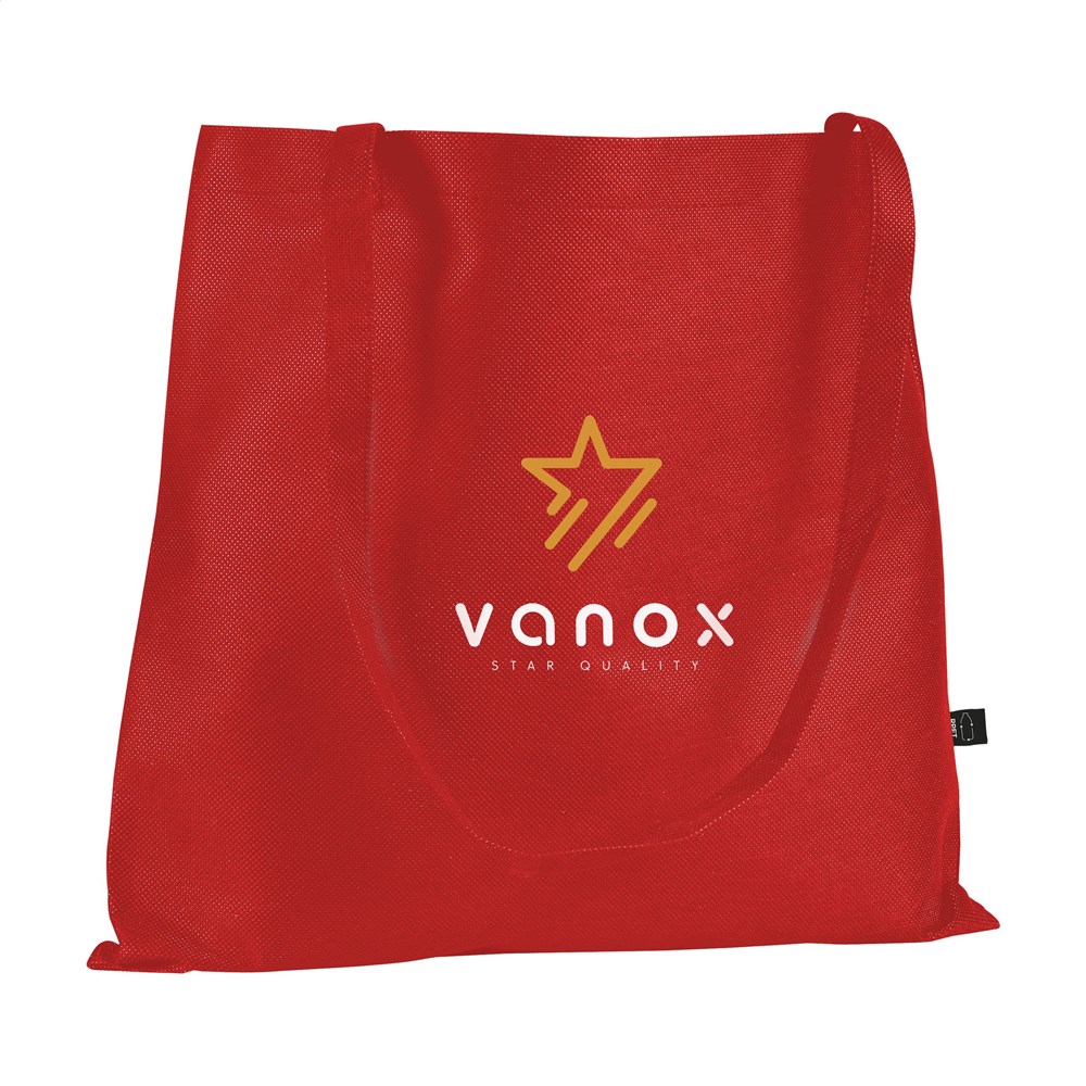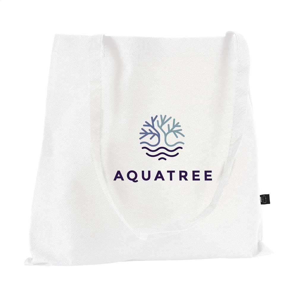 Das Material besteht aus recyceltem Kunststoff. Die Tasche wiegt 80 Gramm pro Quadratmeter. Sie verfügt über zwei lange Tragegriffe für optimalen Komfort. Das Gesamtvolumen beträgt circa 8 Liter. Du wählst aus fünf verschiedenen Farbvarianten. Die GRS-Zertifizierung belegt die nachhaltige Herkunft der verwendeten Fasern.