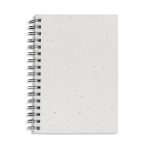 Das Spiral-Notizbuch aus Samenpapier ist ein einzigartiger und nachhaltiger Werbeartikel. Es kombiniert Funktionalität mit einem deutlichen Umweltstatement. Der Einband dieses Notizbuches besteht aus speziellem, biologisch abbaubarem Samenpapier. Dieses Papier ist mit einer Saatmischung angereichert, die unter anderem Lavendel, Gänseblümchen, Minze oder Kirschtomaten enthält. Nach der Nutzung pflanzen Sie den Umschlag einfach ein. Ihre Werbebotschaft fängt so buchstäblich an zu blühen. Das Notizbuch enthält 100 Innenseiten aus Recyclingpapier.