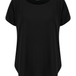 Das Material besteht aus 68% Polyester, 28% Viskose und 4% Polyurethan. Das T-Shirt besitzt einen modernen Oversize-Schnitt. Es verfügt über einen offenen Kragen. Die Schulternähte sind leicht abgehängt. Ein verlängerter Saum an der Rückseite sorgt für zusätzlichen Stil. Das eingenähte Etikett ist abnehmbar.