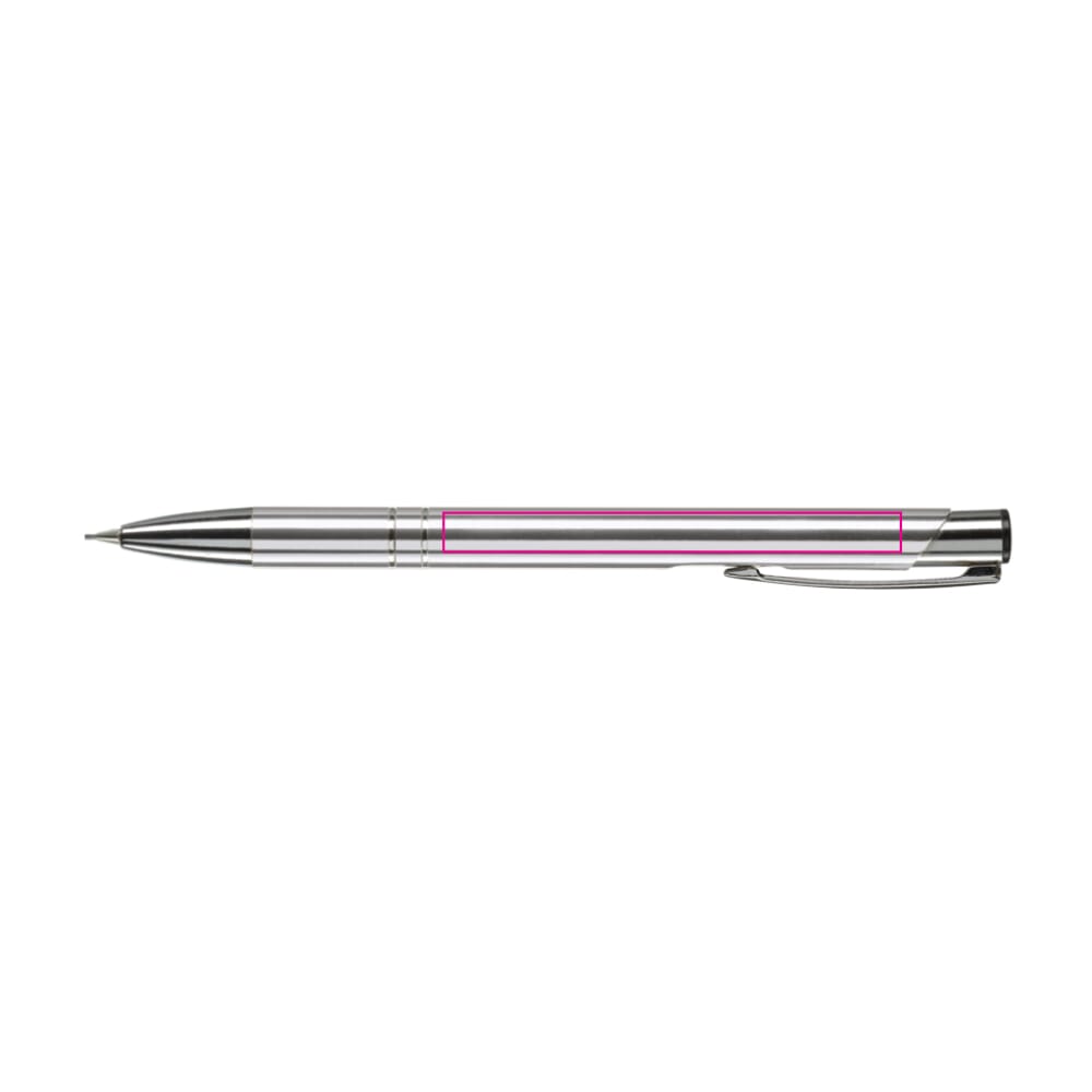 Der Druckbleistift Alicante ist ein hochwertiges Schreibgerät. Er ist aus robustem Aluminium gefertigt. Der Bleistift nutzt Minen mit einer Stärke von 0,7 mm. Das Design wird durch zwei elegante Ringe am Schaft akzentuiert. Dieses Produkt eignet sich ideal als gehobener Werbeartikel.