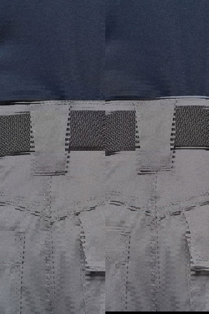 Die Bermuda besteht aus 65% Polyester und 35% Baumwolle. Sie verfügt über einen robusten Reißverschluss und einen Verschlussknopf. Der eingenähte elastische Taillenbund verbessert den Tragekomfort. Die Konstruktion der Bermuda ist besonders stabil. Die Nähte im Schrittbereich sind durch Dreifachstich verstärkt. Sie bietet ausreichend Stauraum durch drei Front- und Gesäßtaschen. Eine zusätzliche Seitentasche wird durch verdeckte Druckknöpfe gesichert.