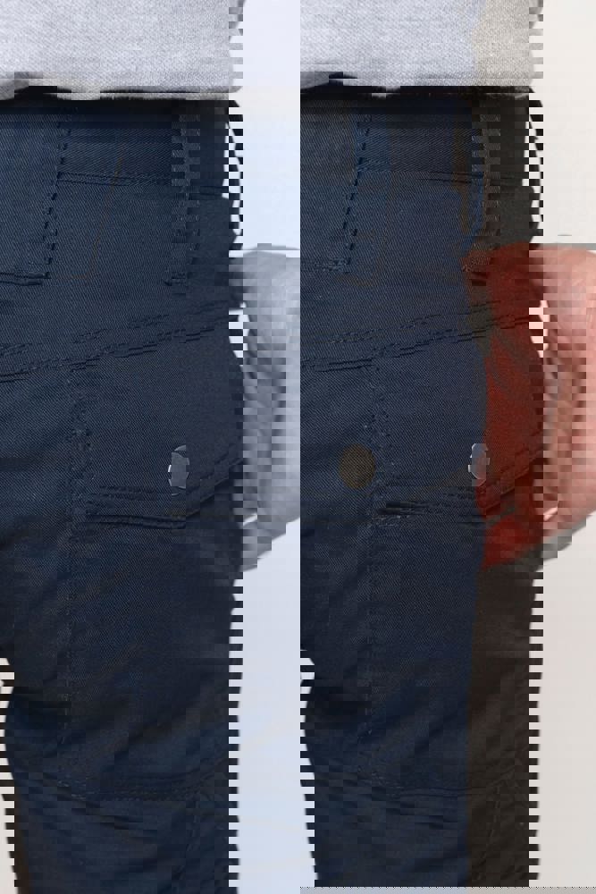 Das Material besteht aus einer strapazierfähigen Mischung von 65% Polyester und 35% Baumwolle. Die Kreuznaht ist für maximale Haltbarkeit dreifach vernäht. Die Arbeitshose verfügt über einen Reißverschluss und eine Knopfleiste. Insgesamt stehen dir 7 Taschen zur Verfügung, davon 3 vorne, 3 hinten und 1 an der Seite. Vorgeformte Kniezonen garantieren eine optimierte Bewegungsfreiheit. Du kannst zwischen den Farben Navy, Black und Convoy Grey wählen.