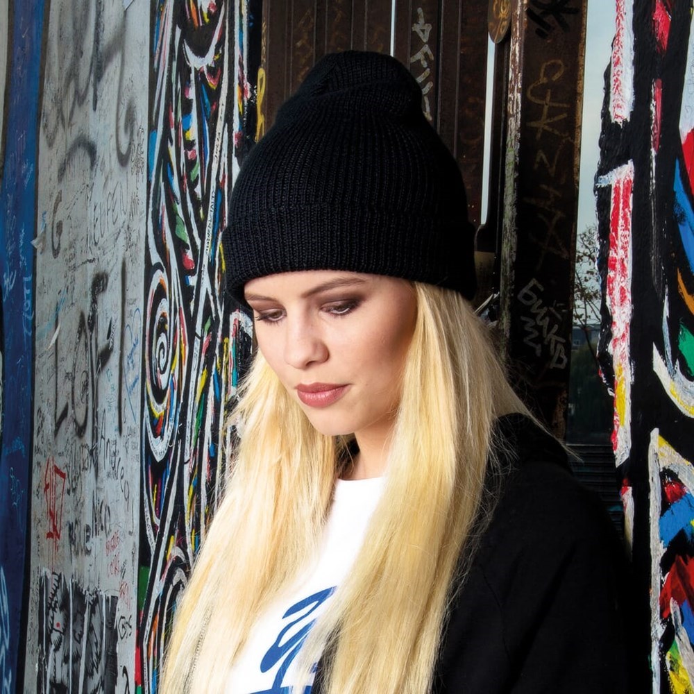 Custom logo rPET beanie | bulk recycled promotional headwear