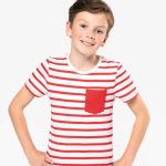 K379 – Gestreept T-shirt met zak en korte mouwen kids