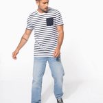 K378 – Gestreept T-shirt met zak en korte mouwen