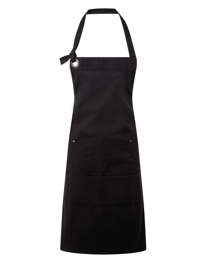 PR136 – Division – Waxed look denim bib apron with faux leather