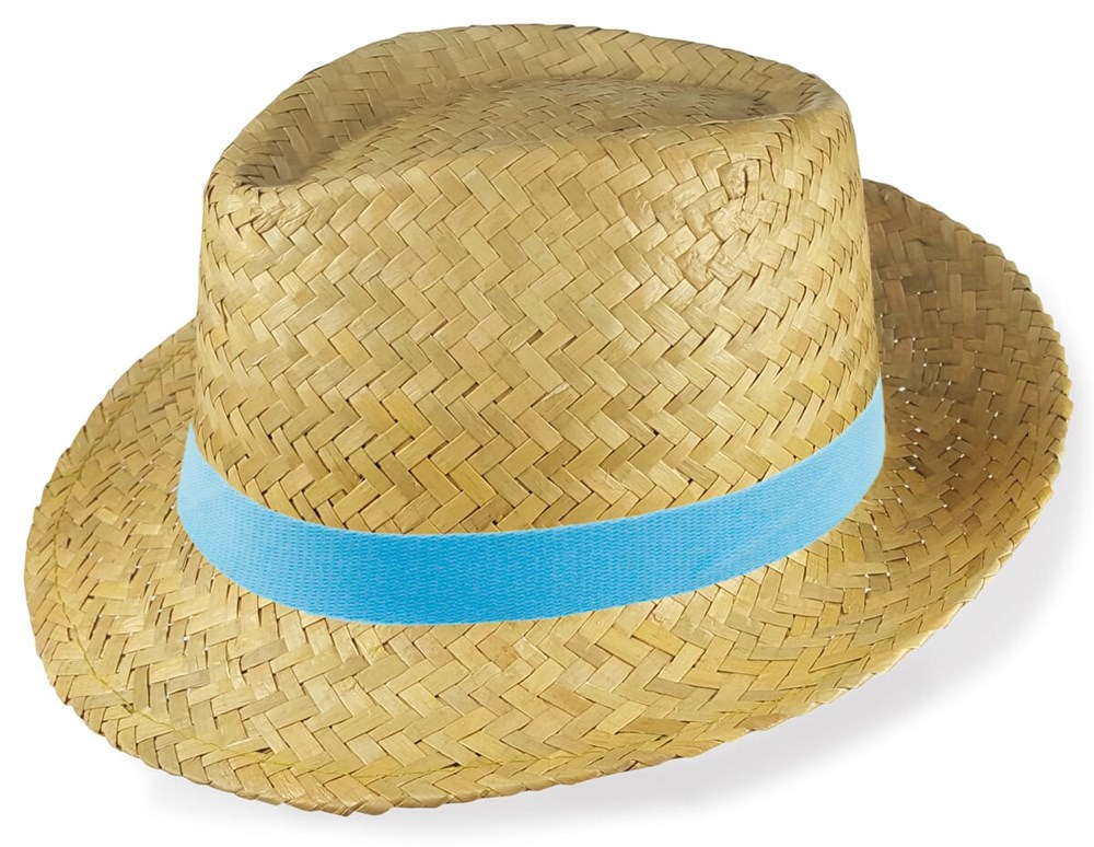 Custom branded straw fedora hats for corporate events.