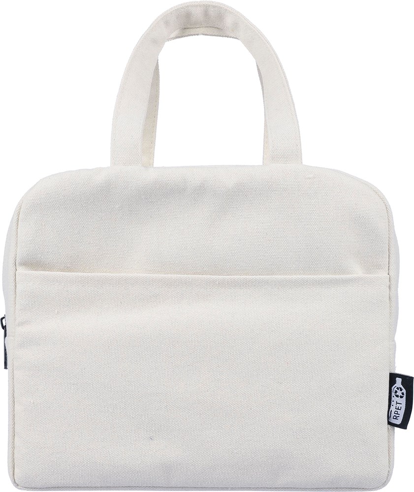 This is a recycled polycotton cooler bag designed for extended cooling. It is ideal for keeping your items fresh during various activities.