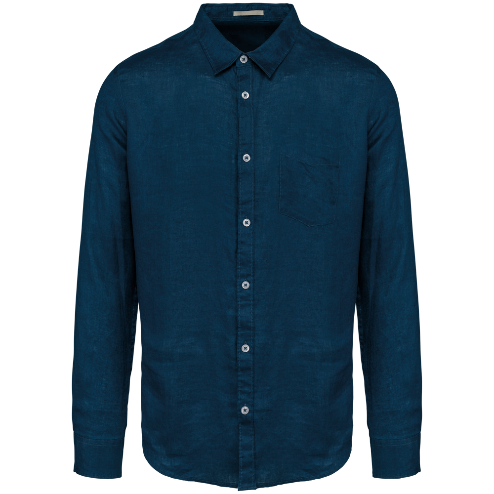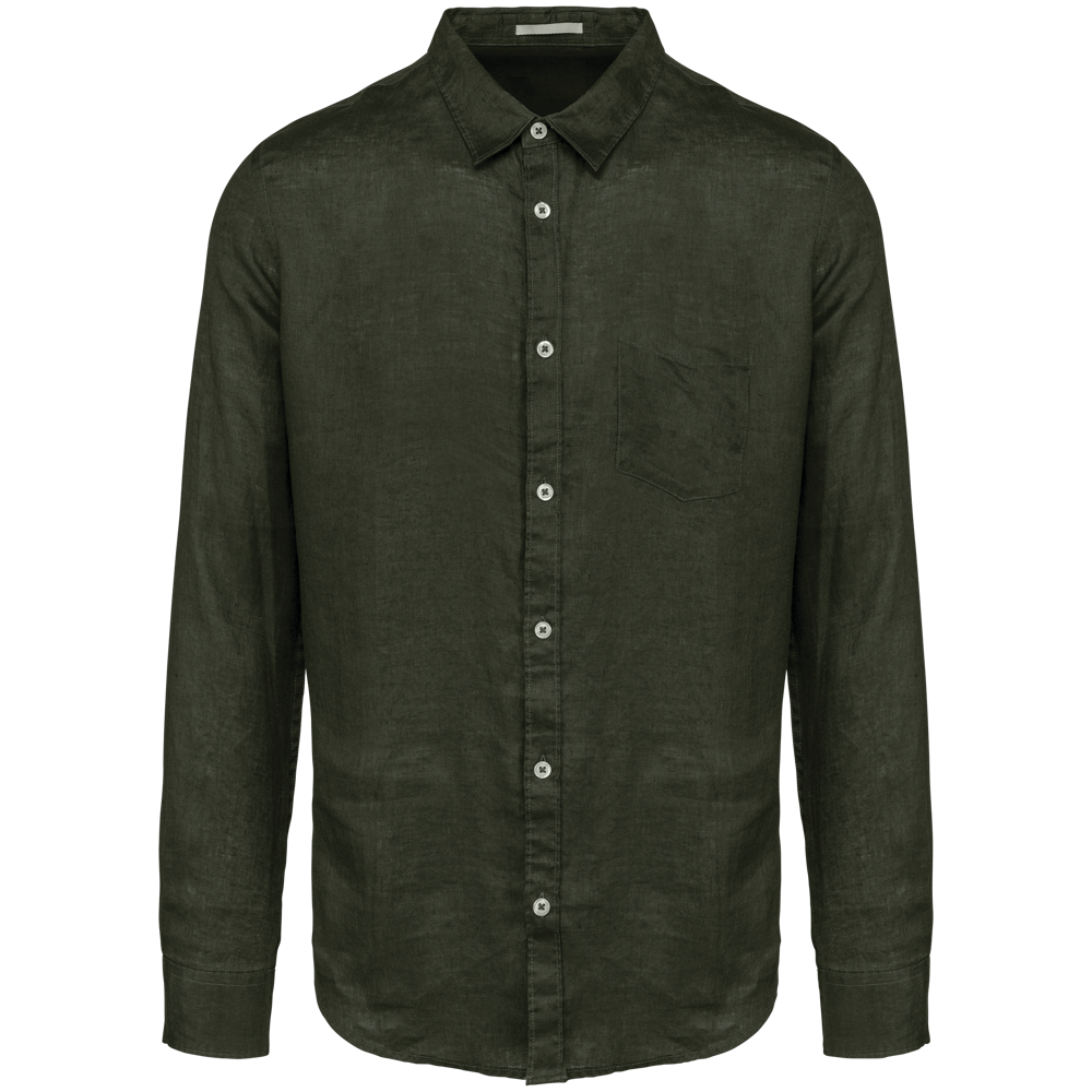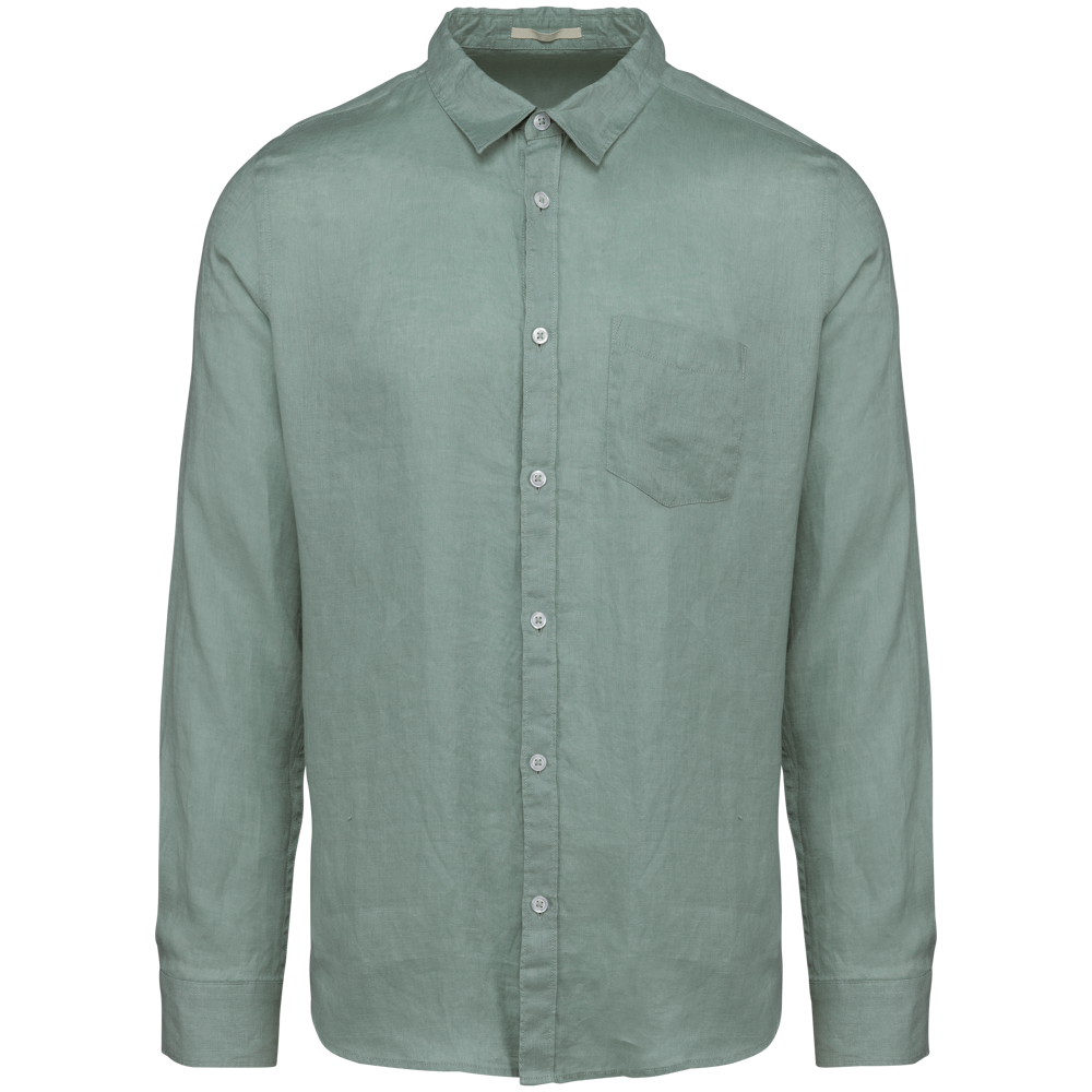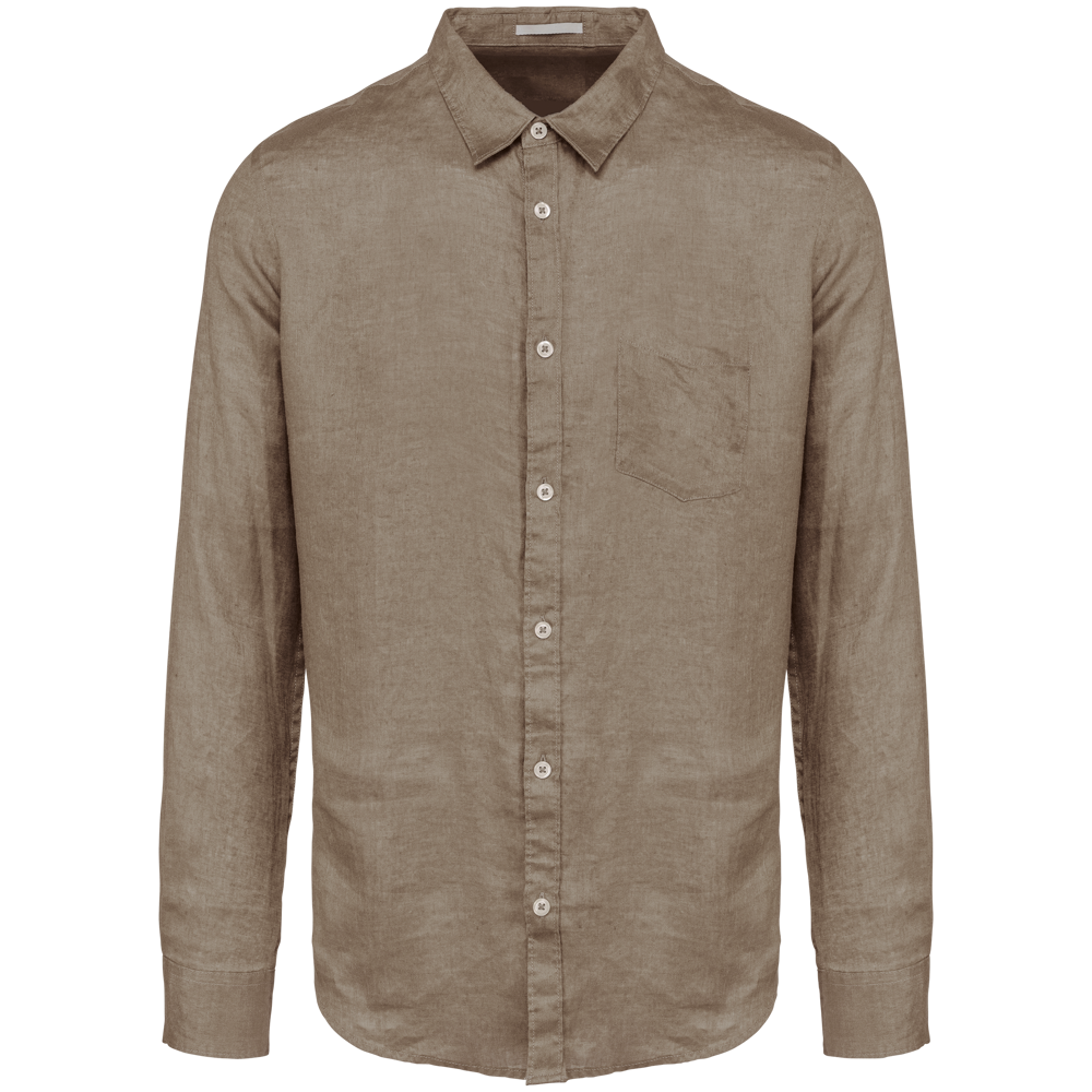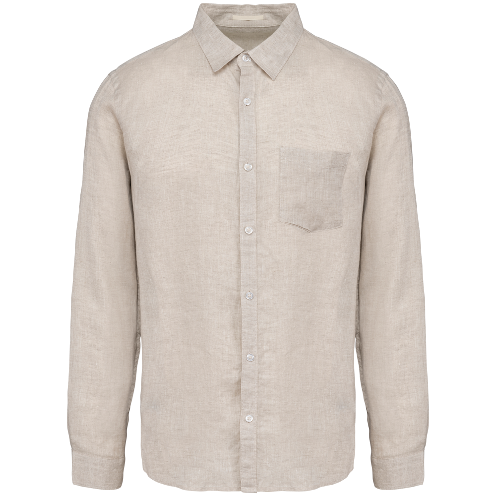 This is the SP504 Men's Linen Shirt. It is made from 100% linen. The shirt features a comfortable straight cut. This linen shirt is ideal for professional branding.