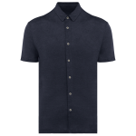 The shirt is made from 100% linen. It features a comfortable jersey knit. It has a straight cut for a modern fit. The shirt includes a stand-up collar. A back insert adds to the design. Sleeve ends and the hem are finished with single stitching. The button placket has contrasting buttons. These buttons are made from recycled plastic. They feature a sophisticated mother-of-pearl look. Available colors include Navy Blue, Organic Khaki, and Linen Sand. Sizes range from S to 3XL, including M, L, XL, and XXL.