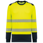 The sweatshirt is made from 65% recycled polyester and 35% combed cotton. It features brushed fleece for softness. An anti-pilling treatment ensures long-lasting quality. You can wash this garment at 60°C up to 25 times. It offers a regular fit for comfort. Contrasting shoulder inserts include a 5 cm wide segment reflective band. The collar is lined with 100% recycled polyester in a 1x1 rib knit. It has a contrasting insert under the arms. Two 5 cm segment reflective bands are on the front, back, and sleeves. The bottom of the sleeves and garment feature contrasting 1x1 rib knit from 100% recycled polyester. This product is PPE Class II certified. It complies with NF EN ISO 20471:2013 + A1:2017 Class 2 for high visibility. It offers UPF40+ UV protection, meeting NF EN 13758-1+A1:2007 and NF EN 13758-2+A1:2007. It also meets NF EN ISO 13688:2013 + A1:2021 general requirements. The brand label is removable. Available sizes include XS, S, M, L, XL, XXL, 3XL, 4XL, 5XL, 6XL. The primary color available is Navy.