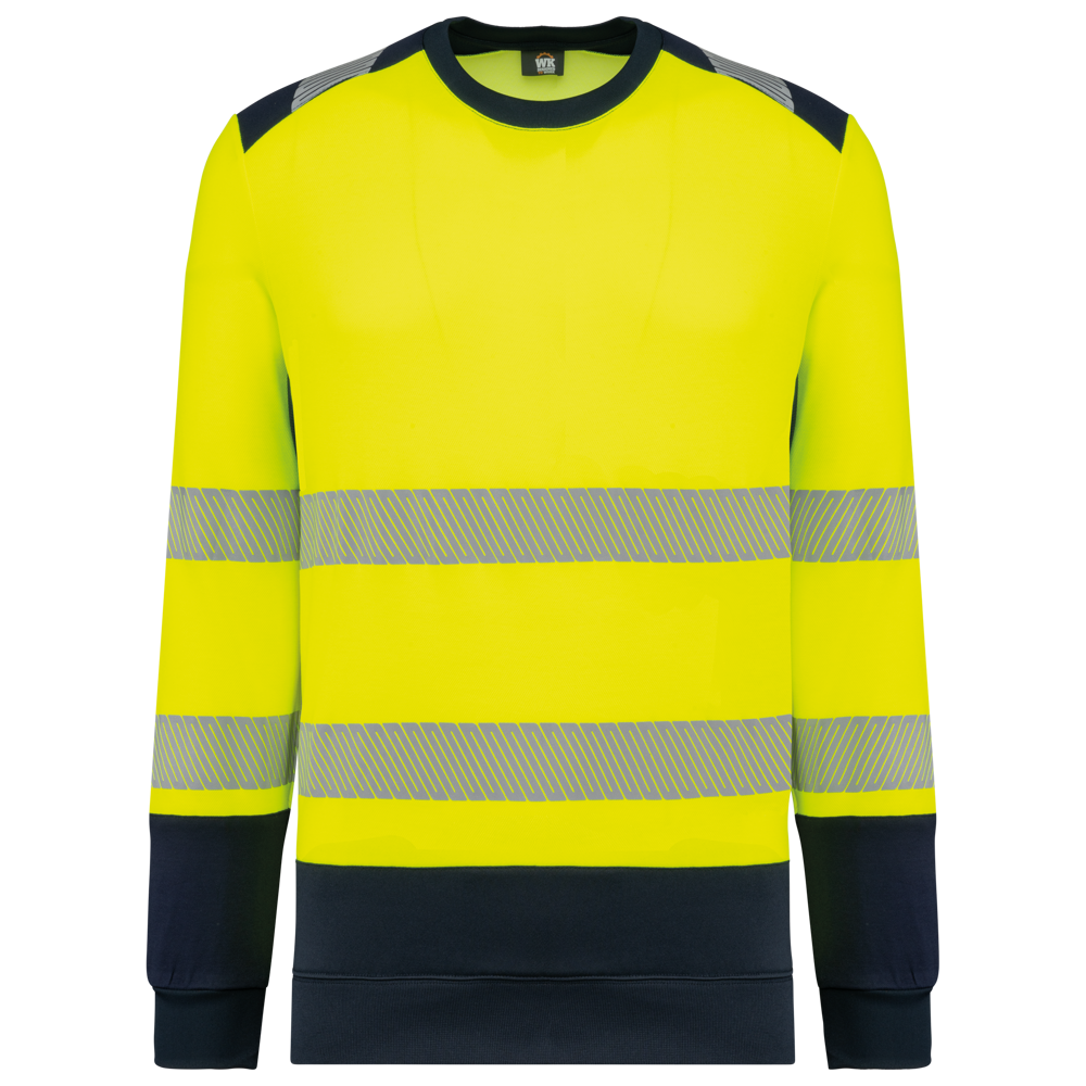 The Safety Sweatshirt WK420 Recycled Class 2 is a high-visibility workwear item. You can use it for professional and promotional settings. It combines recycled polyester and cotton for comfort and durability. This sweatshirt meets Class 2 safety standards.