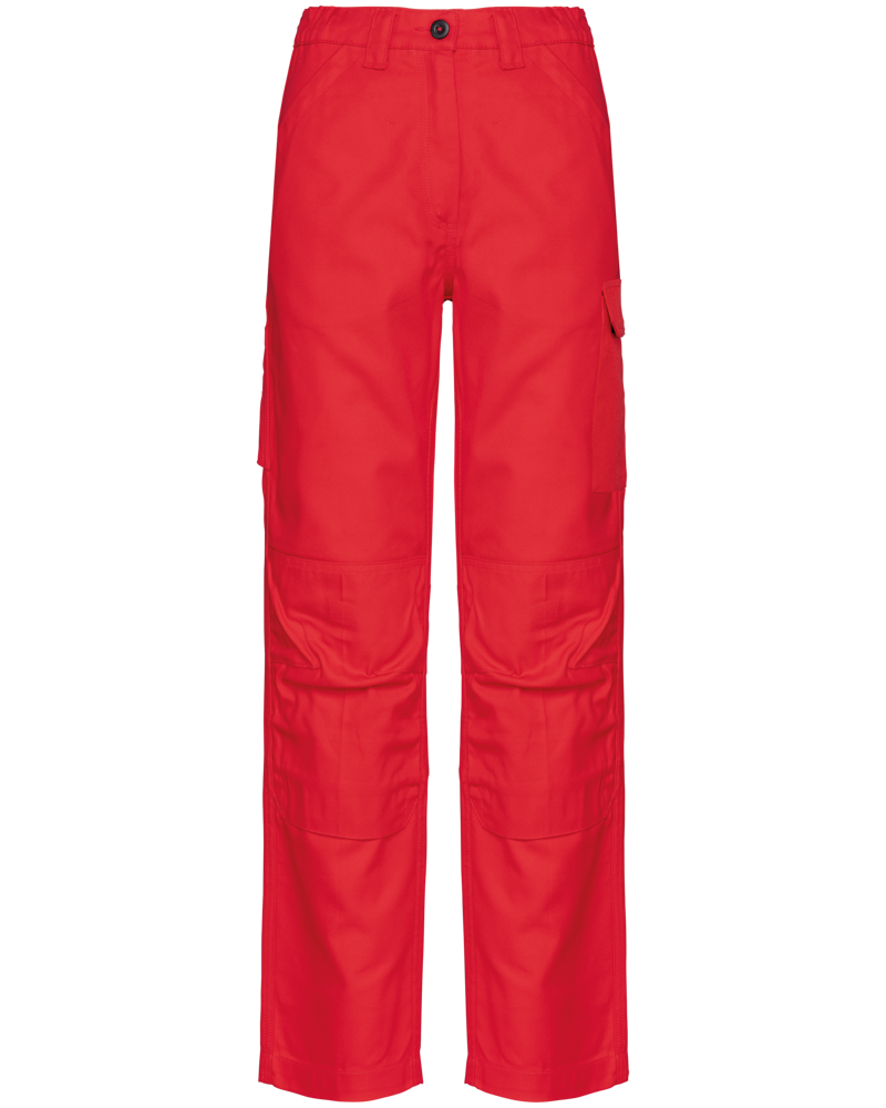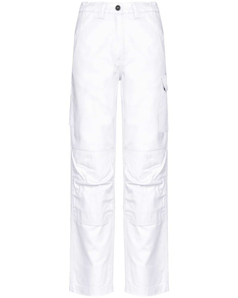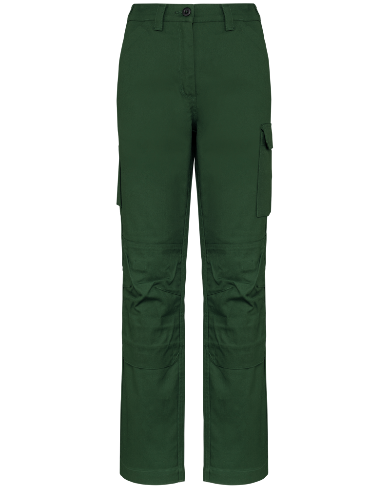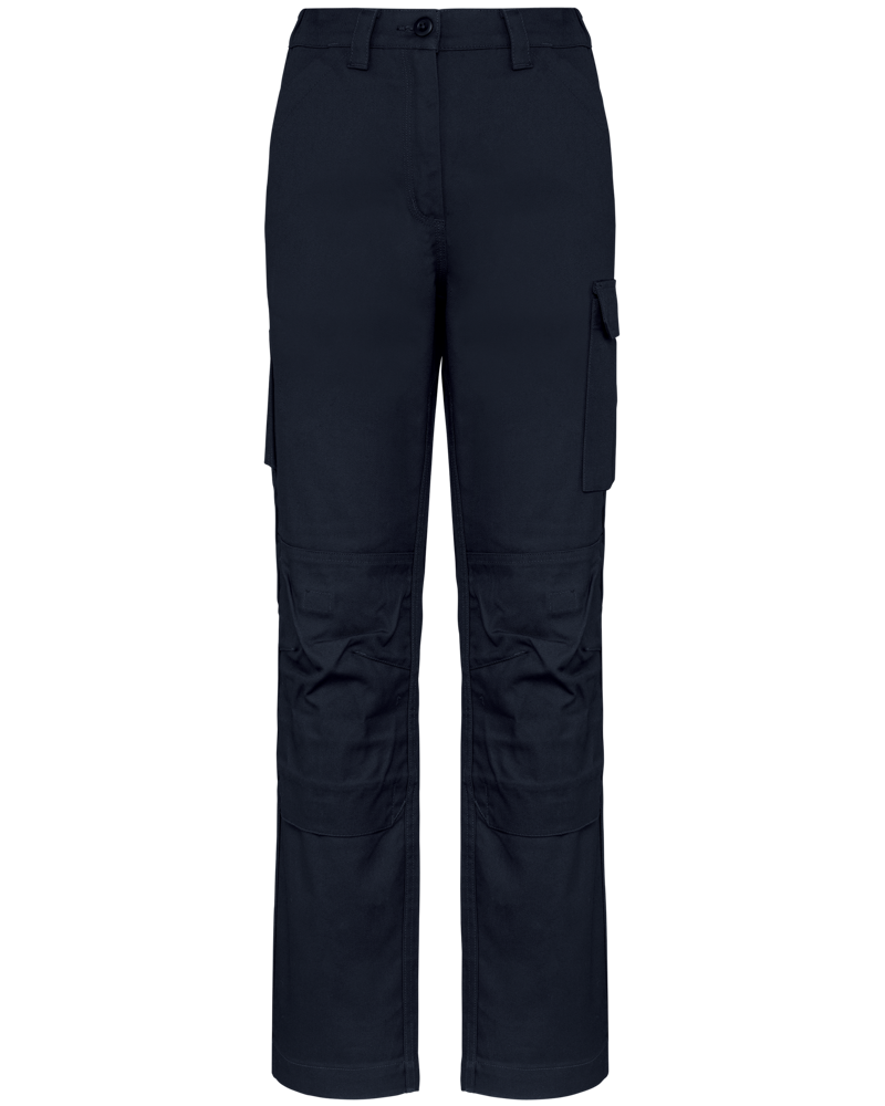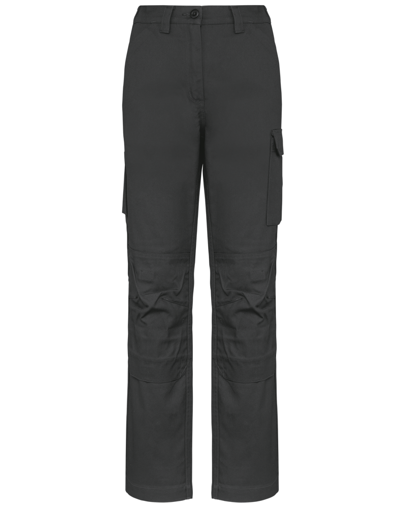 These are the Women's Work Trousers WK741. They are designed for durability and functionality in professional environments. The trousers feature multiple pockets for practicality. You can customize these work trousers with your own logo. They are suitable for business clients, associations, and various event needs.
