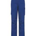 The trousers are made from a 60% cotton and 40% polyester twill fabric. You can wash them at 60 °C. They offer a straight cut for comfort. There are two front pockets. You will find one flap pocket with hook-and-loop closure on the left side. On the right, there is a double open tool pocket. Two patched back pockets are also included. Two tone-on-tone knee pad pockets with hook-and-loop closure and an inner flap keep knee pads in place. The waistband is partially elastic with loops. A zipper with a plastic button secures the trousers. A gusset provides extra strength and freedom of movement between the legs. Double stitching reinforces side seams. Triple stitching is used for the gusset and crotch. Piping stitching is present between the legs. The leg hems are finished. The brand label is removable. These trousers are available in sizes 32 NL (34 FR) to 46 NL (48 FR). You can choose from Navy, Black, Forest Green, White, Red, Royal Blue, and Dark Grey.