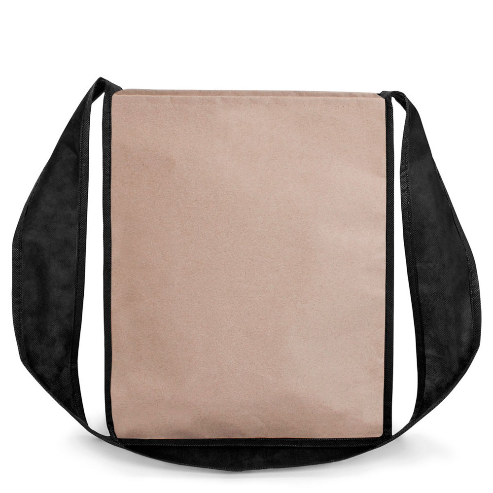 This is the Genf Shoulder Bag, a distinctive promotional item. It combines recycled kraft paper with durable non-woven material. This bag offers a unique and sturdy solution for your brand.
