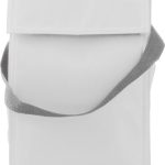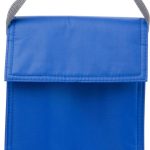 This Cooler/Lunch Bag is made from 420D Polyester. It offers robust durability. The interior has insulation foil. This maintains temperature effectively. It features a secure Velcro closure. A grey carrying strap measures 2.5 x 51 cm. This ensures comfortable transport. The bag is available in White, Red, and Cobalt Blue.