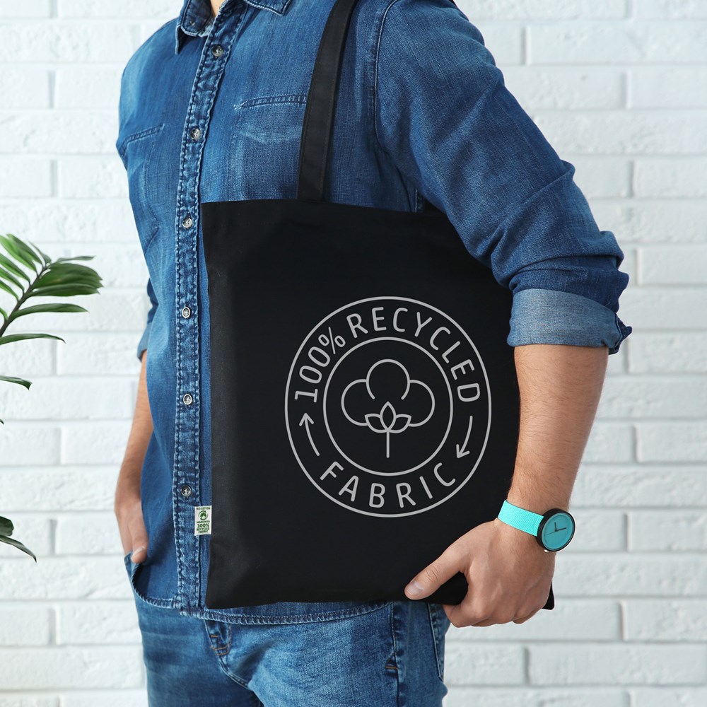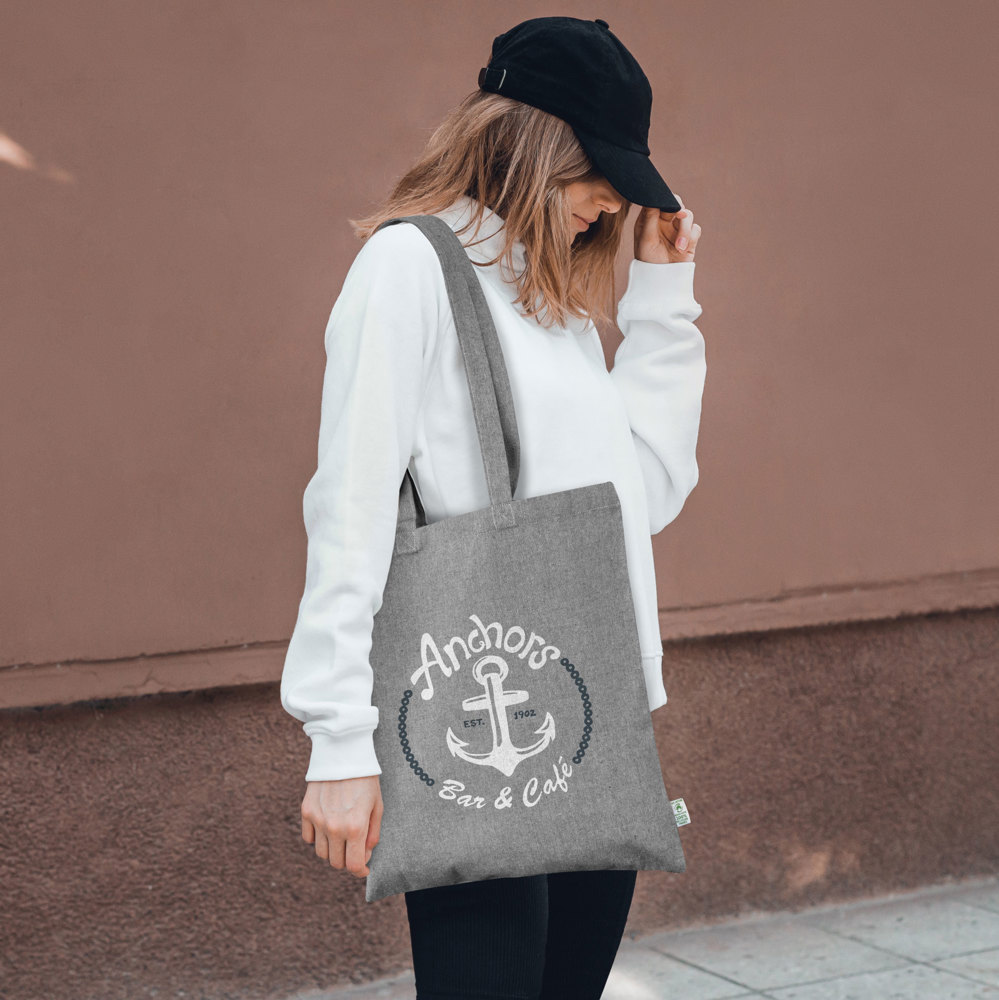 You are looking at our heavy recycled cotton tote bags. These robust bags are made from 100% recycled cotton material. They are ideal for businesses, associations, and events. You can order these bags in White, Black, or Grey mottled.