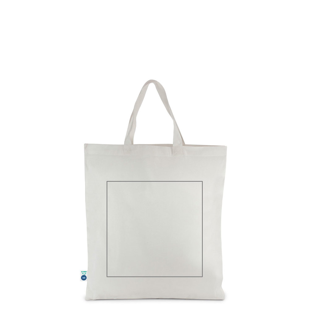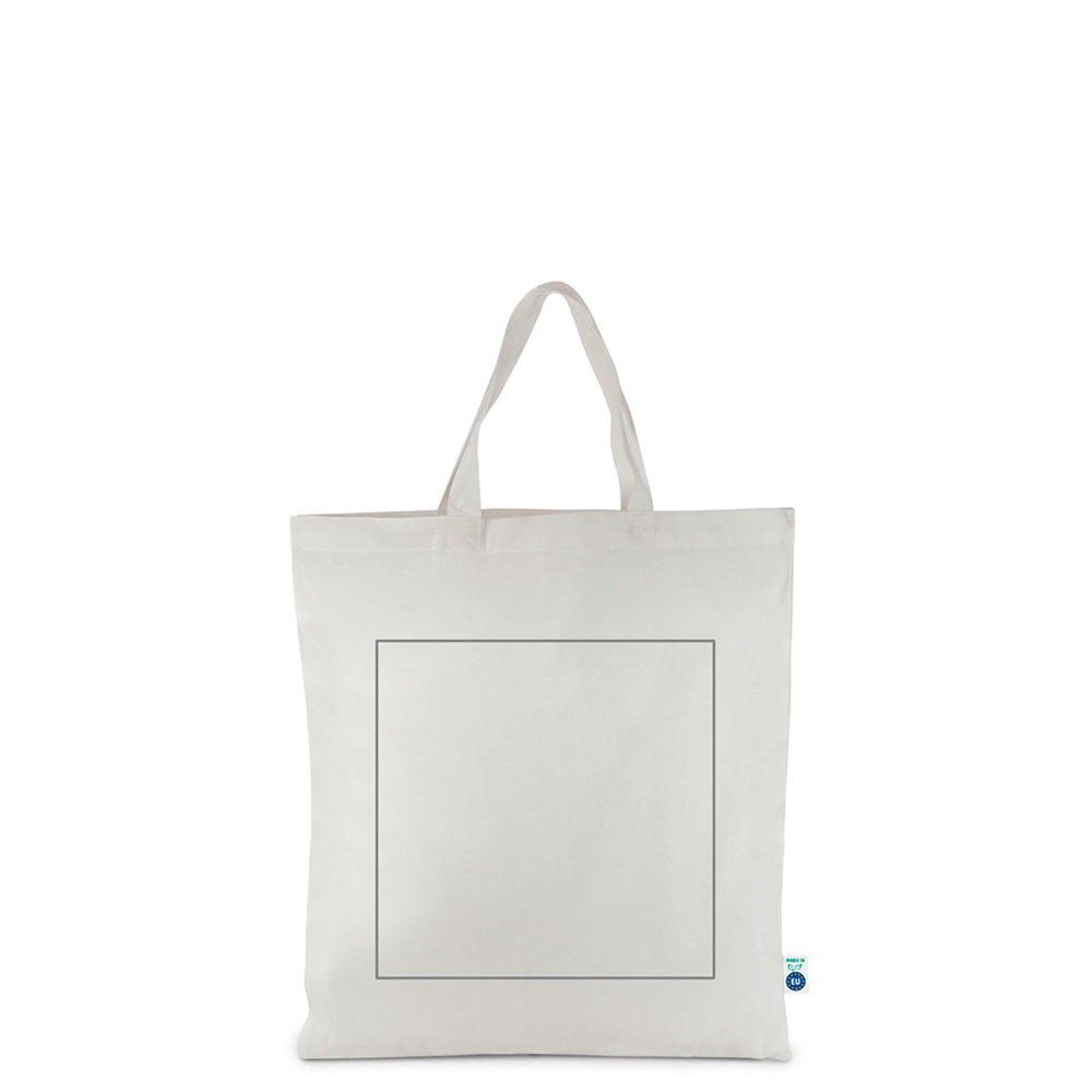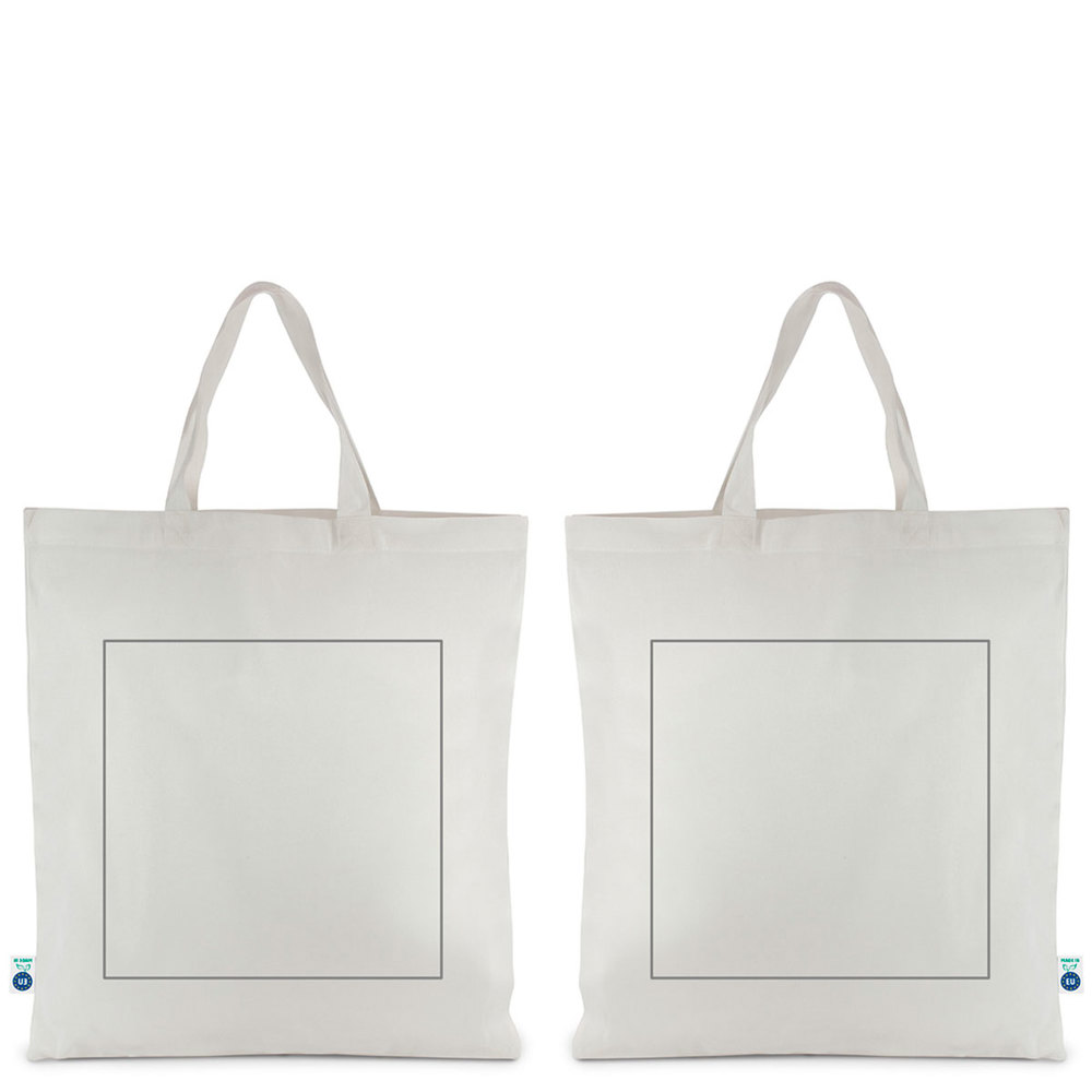 You are viewing a sustainable shopper bag. This bag is made from ECOVERO wood fiber fabric. This material is OEKO-TEX® MADE IN GREEN certified. The bag features short handles. This product is entirely produced within Europe. This ensures reduced transport distances and a low carbon footprint. You can customize this shopper bag with your company logo.