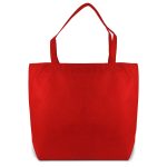 The bag is crafted from durable Premium-PP Non-woven material. It has a spacious main compartment. The bottom features pleats for expanded capacity. A full-length zipper provides secure storage. Long handles ensure comfortable carrying. It is available in White, Black, Red, Light Green, Navy Blue, and Royal Blue.