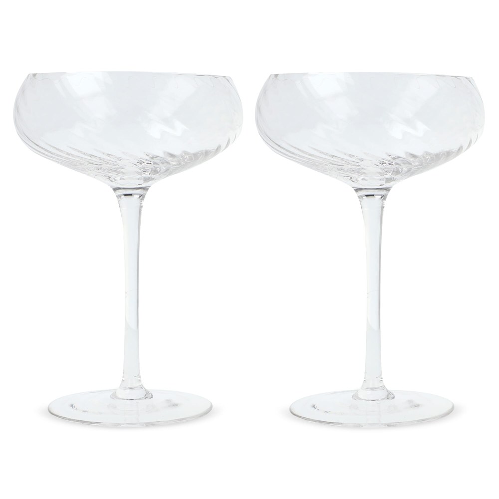 This Champagne Glasses Set Byon Opacity includes two elegant 300ml glasses. Each glass features a stylish spun glass pattern. This set is designed by Studio Byon. The glasses are made from clear, high-quality glass. They come delivered as a set in a gift box.