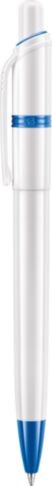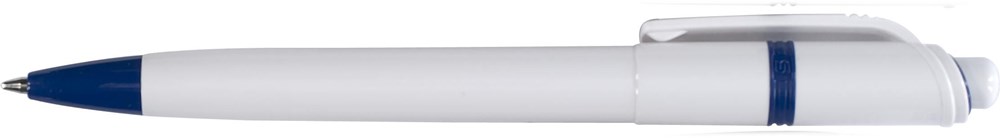 You are looking at the Stilolinea Ducal ballpoint pen. This pen is crafted from durable plastic. It features a distinctive white tip and colored accents. The pen writes with reliable blue ink. It is equipped with high-quality German Dokumental ink.