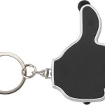 The keychain is constructed from robust ABS plastic. It features an integrated stylus for touchscreen devices. A single LED lamp provides convenient lighting. The item comes with batteries included for immediate use. Its compact design makes it easy to carry. The Melvin keychain is offered in a selection of colors.