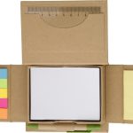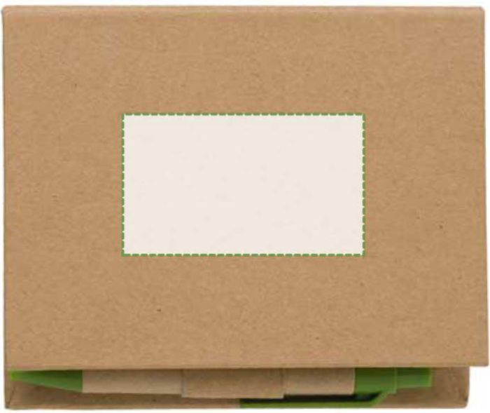 This set features a durable cardboard memo pad holder. It includes a memo pad and a matching cardboard ballpoint pen. The pen writes in blue ink. The holder’s lid also offers a dedicated space for business cards. This specific model is available in light green and can be variable in colour.
