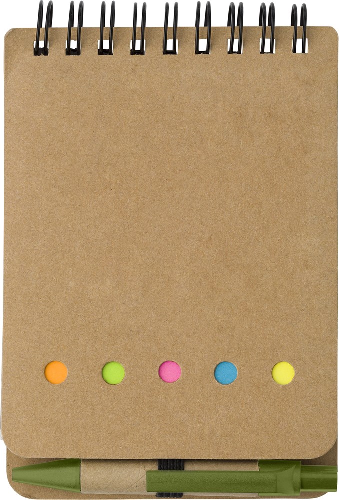You can keep your desk organized with this light green Rodrigo set, which includes a black-ink pen and colorful sticky notes. Personalize the cardboard cover with your logo to create unique office accessories. These practical promotional giveaways are perfect for making your brand stand out.