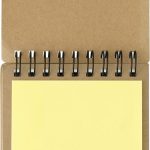 This is a cardboard memo holder. It comes complete with a black-writing ballpoint pen. The set includes 25 self-adhesive memo notes in 5 different colors. You also receive a notepad with 60 sheets of lined paper.
