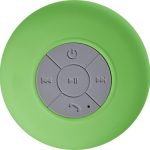 The ABS Speaker Jude features 2 watts of power. It connects wirelessly to your devices. This speaker is splash-proof. You can make hands-free calls with it. Listen to music easily. A suction cup allows attachment to smooth surfaces. The ABS Speaker Jude recharges via a USB cable. It is made from durable plastic. Available colors include Red, Lime, and Yellow.
