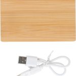 The power bank comes in a natural brown color, highlighting its bamboo material.