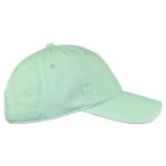 The caps feature a durable six-panel construction for stability. They are made entirely of 100% cotton, ensuring breathability and comfort. An adjustable buckle closure provides a secure fit for different head sizes. Available colors include Black, Orange, Purple, Mint Green, and Ocean Blue.