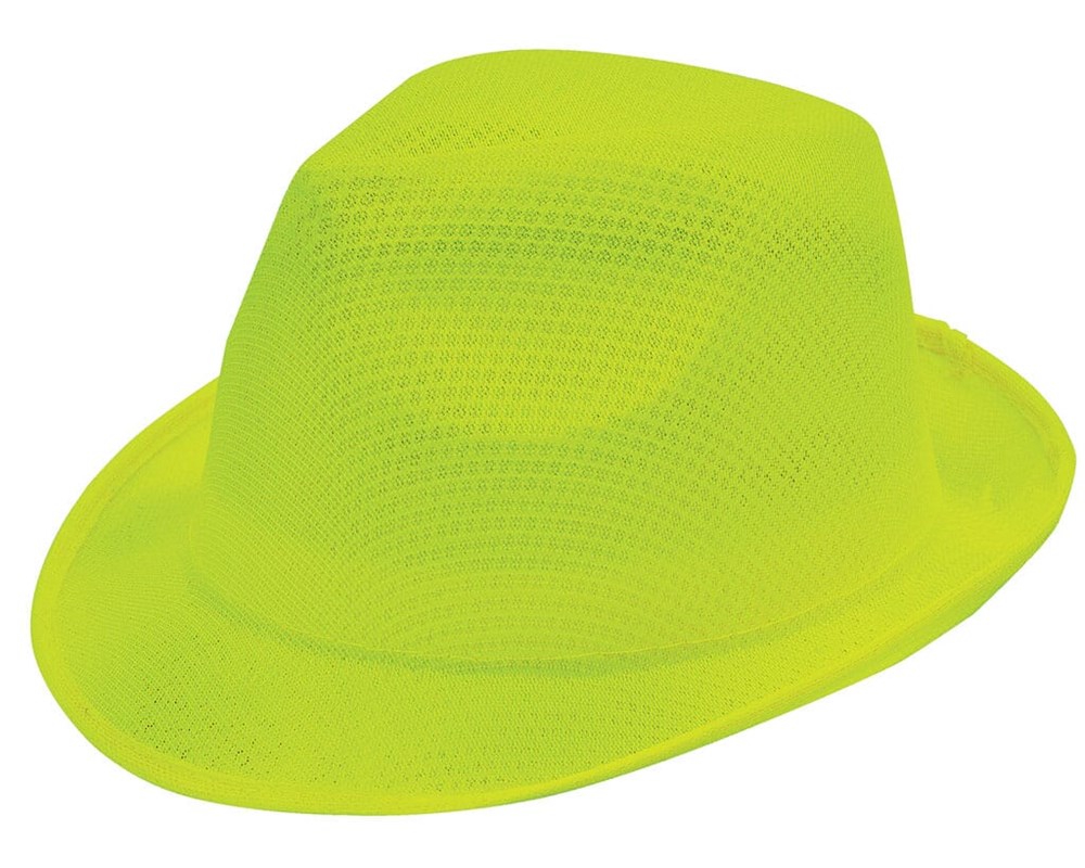 The standard adult circumference of this Fedora hat is 58 cm. You can select this promotional item in several vibrant colors, including Navy, White, Black, Red, Orange, Yellow, Green, and Pink.