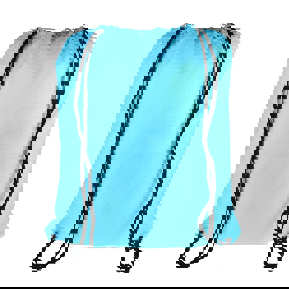 The drawstring sports bag features reinforced corners. This design element significantly improves the durability and lifespan of the bag. The material is lightweight for easy transport and handling. The bag is available in a wide selection of twelve distinct colors. These options allow you to match the bag color to your specific brand identity.