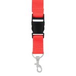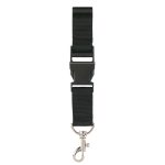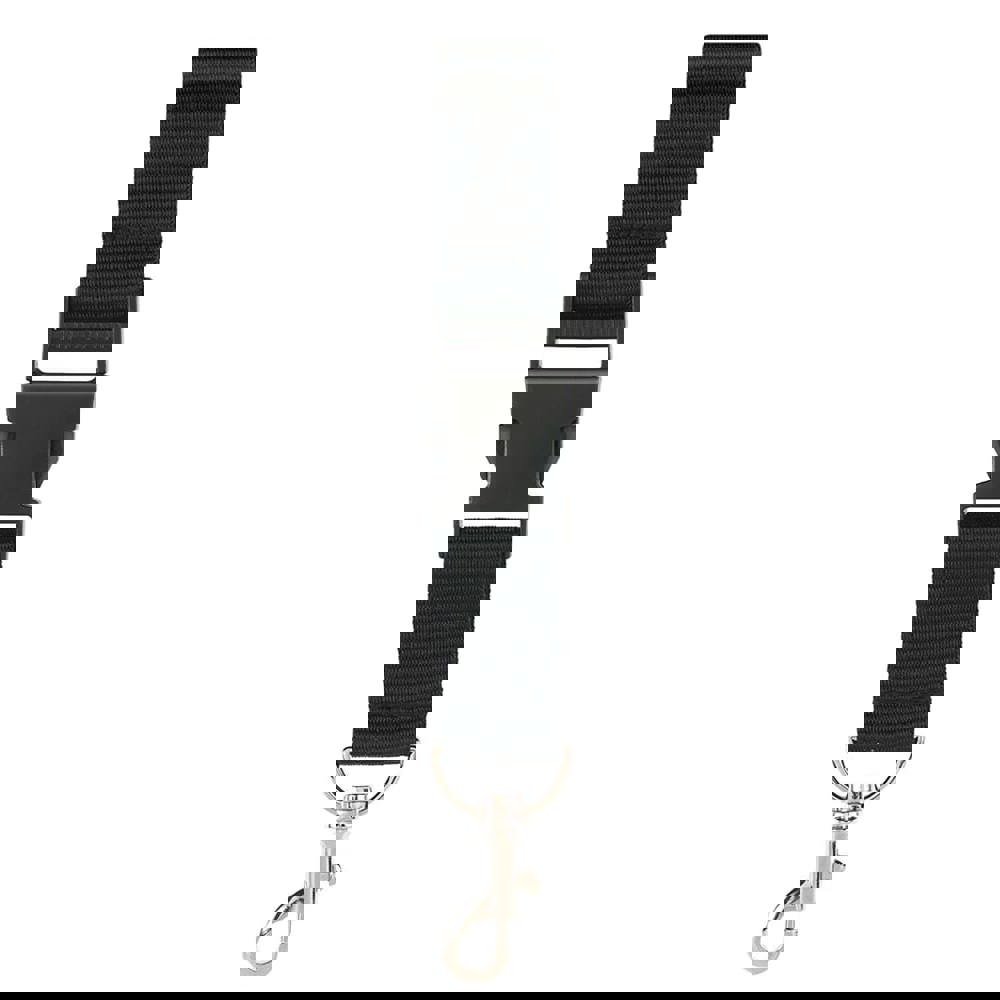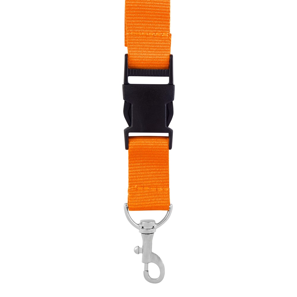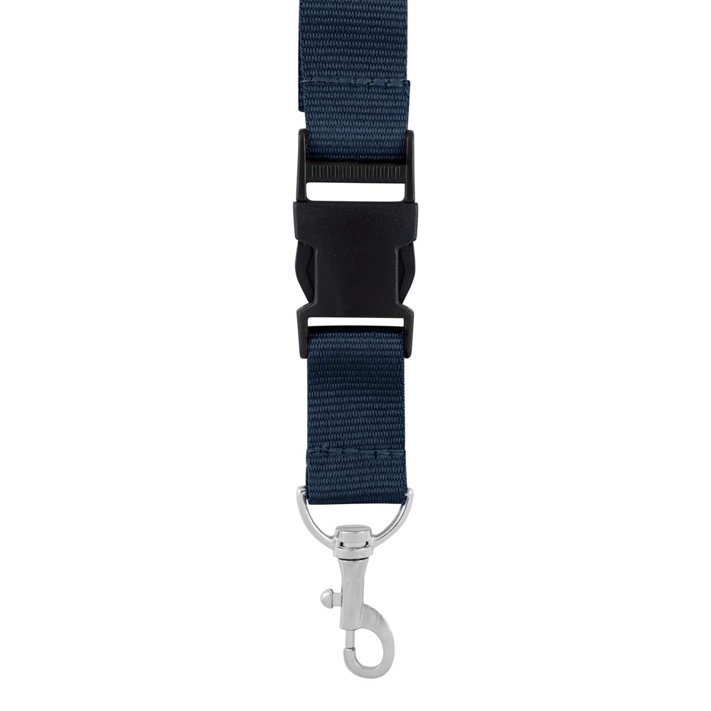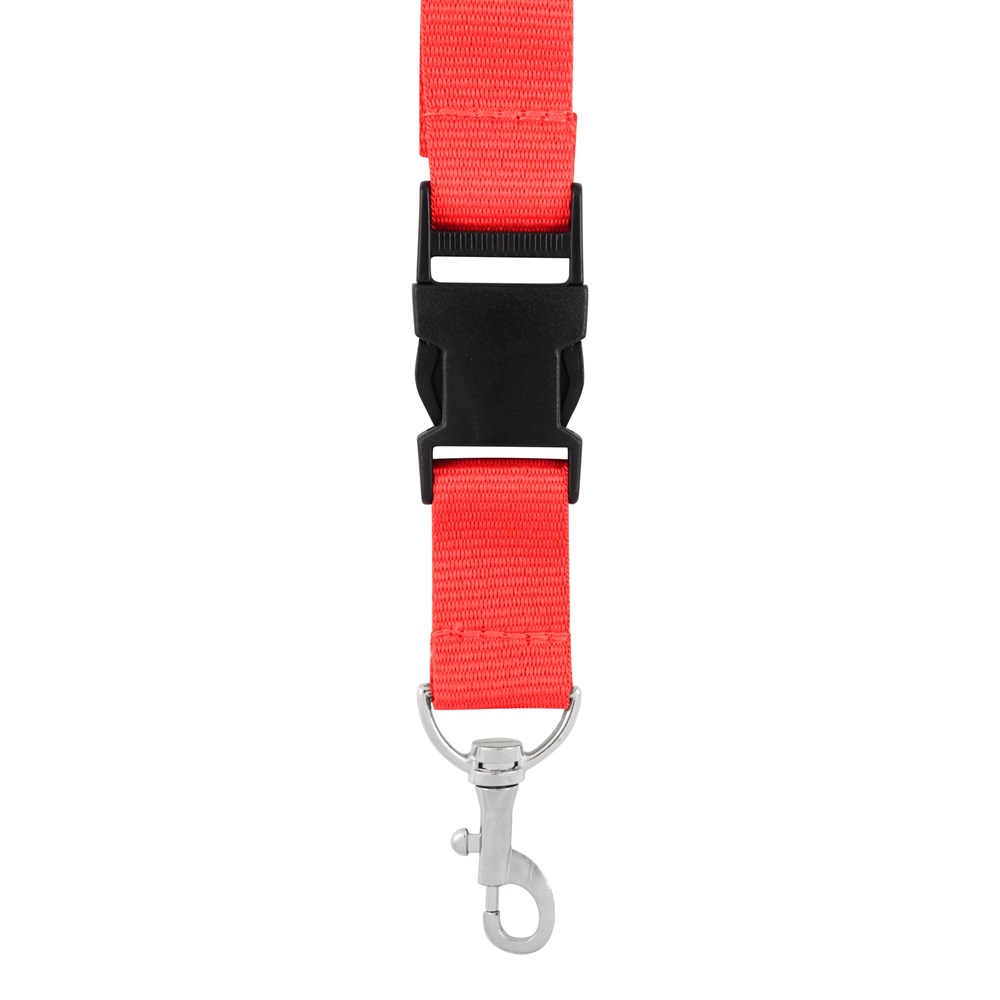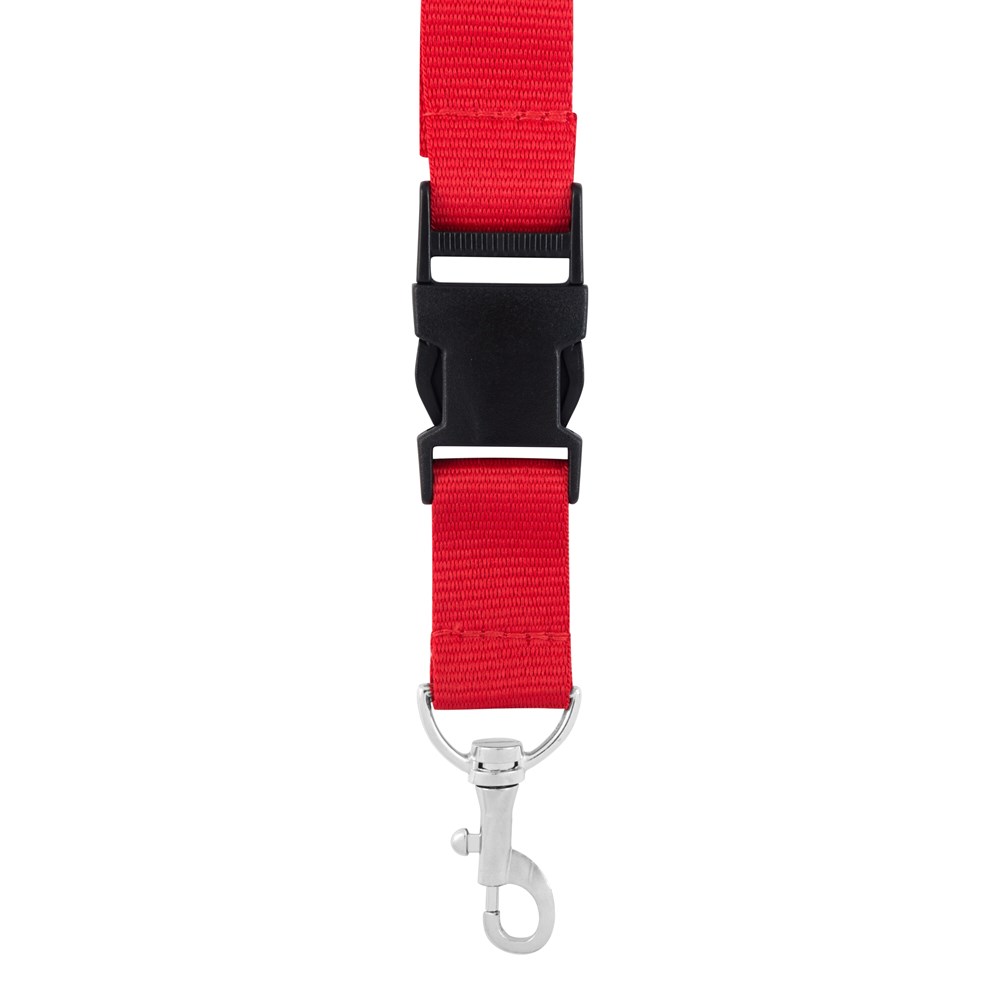 The neck strap width is 2.5 cm. This size provides a maximum area for clear logo printing. The integrated safety break releases automatically when tension is applied. This safety feature is mandatory for many workplace settings. A reliable metal clip secures keys or ID holders. The material is manufactured for durability and comfortable long-term wear.