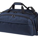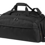 This is the Halfar Mission Sports and Travel Bag. It is a robust, large-capacity bag suitable for various transport needs. You can use this item for sports equipment, gym visits, or short business trips. This bag serves as a high-quality promotional item. It is specifically designed to be customized with your company logo.