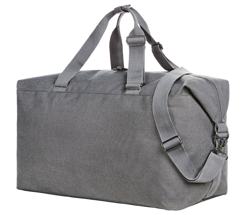 This is the Halfar LOOM Sustainable Duffel Bag. It is a versatile travel bag designed for durability. The bag features a spacious main compartment with a two-way zipper. A reinforced bottom adds stability to the bag. You can use this duffel bag for travel, sports, or events.